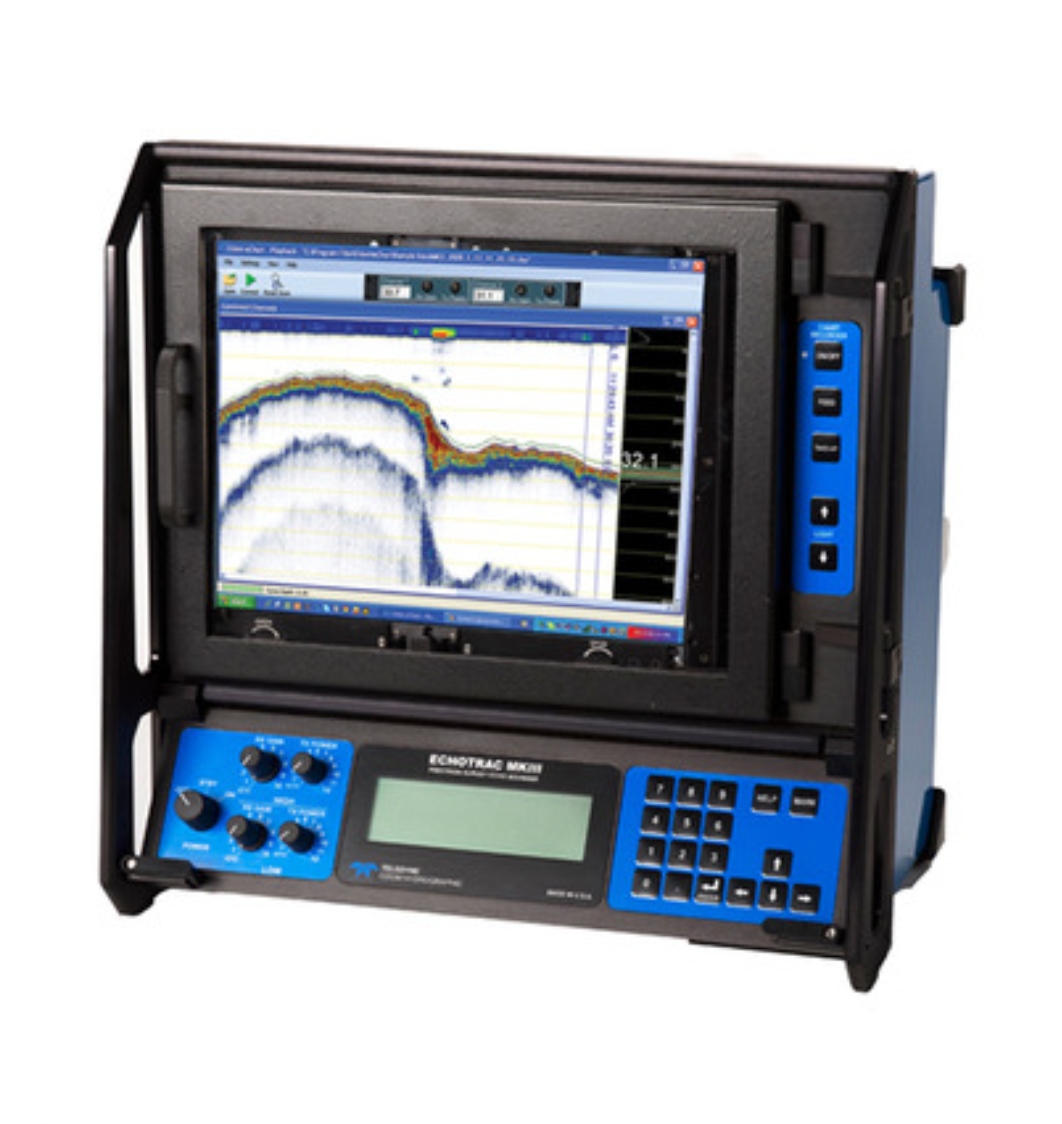 The Echotrac MKIII is the only sounder on the market offering you the choice of either a high resolution thermal paper recorder or a full-sized high bright color LCD chart in interchangeable module format